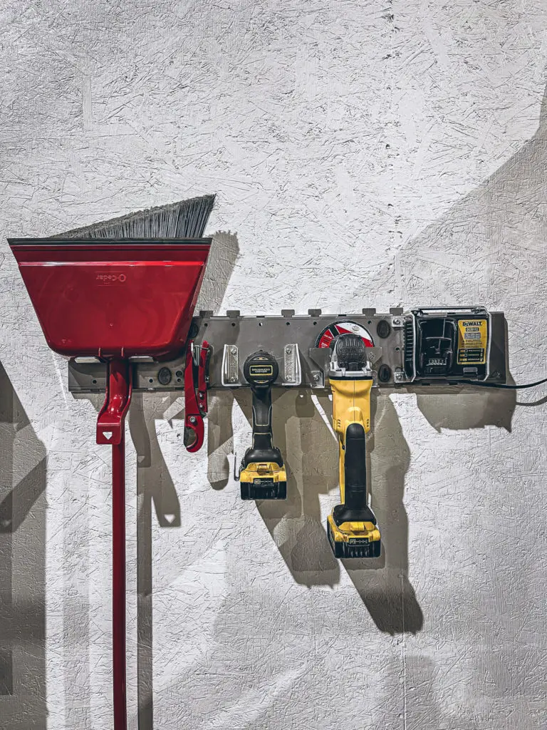 Here at AAL we know that all adventures start in the garage. And that’s why we are excited to release this new garage storage system! WALL-EO (WALL Equipment Organizer) is the new best thing to happen to your garage. Built to attach to your garage or workshop. Will have wall plates for studs: 16”, 24” on center. Mounts for DeWalt tools and chargers. (Other brands coming soon!) Attachments can include:- Sweepy Keepy Holder (Broom)