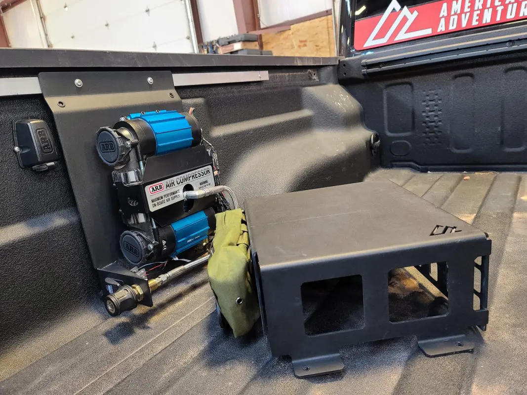 The comfort of this trip is greatly increased when you are able to lower the tire pressure. To do that, you need to be self sufficient to re-air. We sell a bracket kit that allows you to quickly and easily mount the ARB Dual Compressor into the bed of your Gladiator. Onboard air is almost priceless on long trips like this.