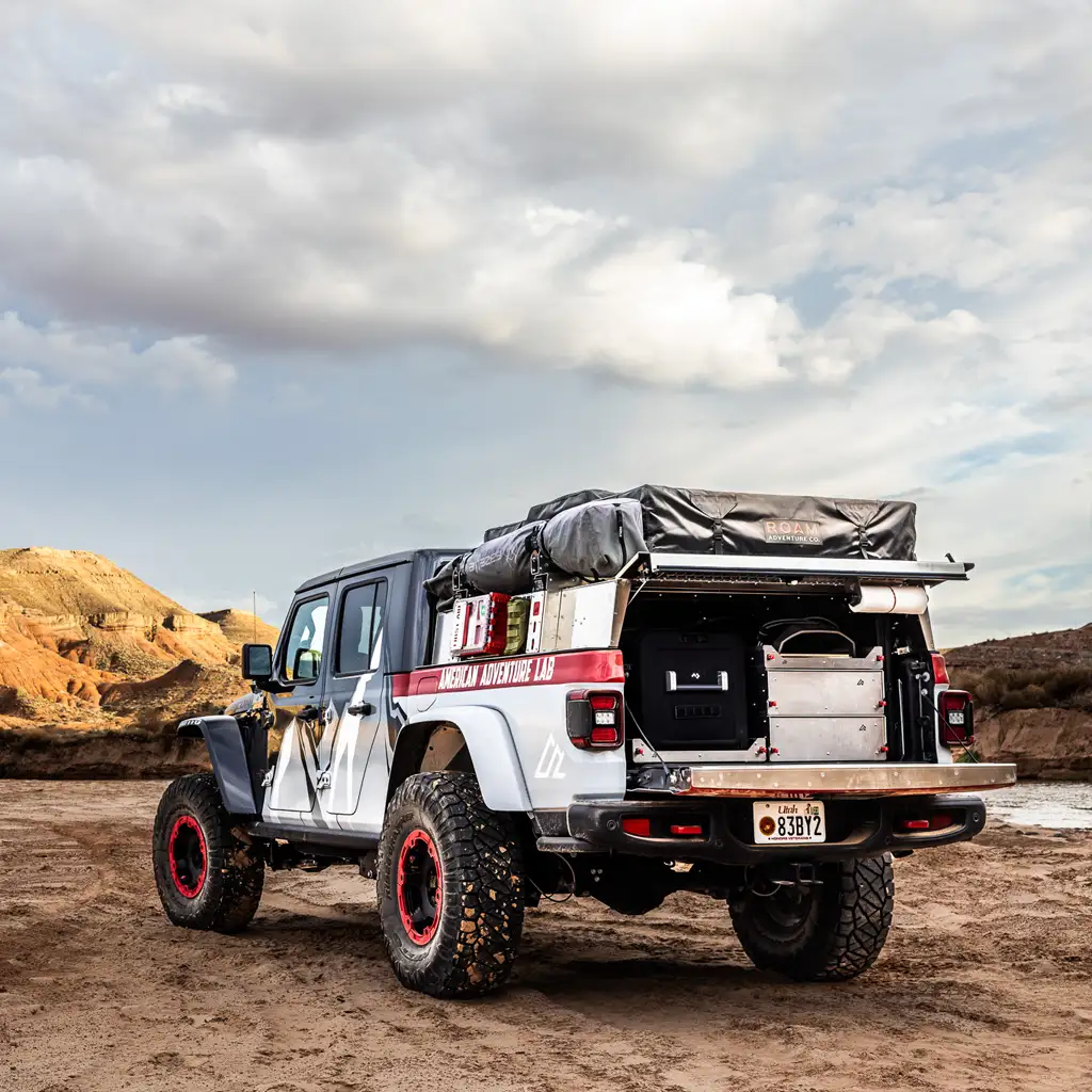 The Jeep Gladiator merges Wrangler off-road capability with the utility of a truck bed, making it the most versatile platform for overland builds. With its solid axles, removable top, and true 4x4 drivetrain, the Gladiator is equally at home crawling boulders or hauling gear to basecamp.
